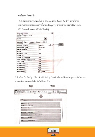 3.2 คลิกแท็บ Design เลือก Add Existing Fields เพื่อวางฟิลด์ต่างๆลงบนฟอร์ม และ