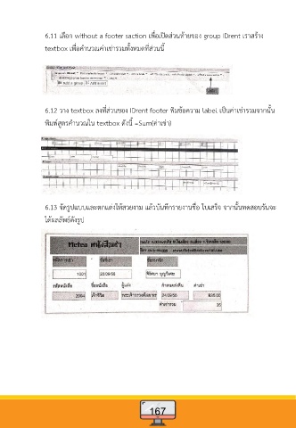 6.13 จัดรูปแบบและตกแต่งให้สวยงาม แล้วบันทึกรายงานชื่อ ใบเสร็จ จากนั้นทดสอบรันจะ