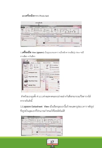 1.เครื่องมือ View (มุมมอง) เป็นมุมมองของตารางเมื่อคลิกตารางเมื่อปุ่ม View จะมี