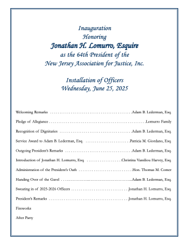 Swearing in of 2025-2026 Officers . . . . . . . . . . . . . . . . . . . . . . . . . . . . . . .Jonathan H. Lomurro, Esq.