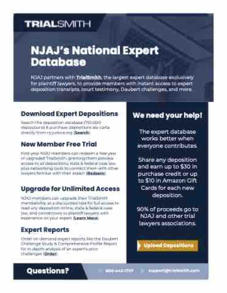 NJAJ partners with TrialSmith, the largest expert database exclusively