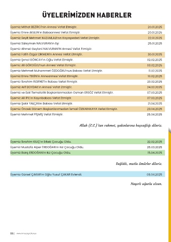 Page 86 - BÜLTEN 93. SAYI YÜKSEK KALİTE