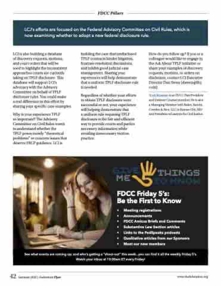 LCJ’s efforts are focused on the Federal Advisory Committee on Civil Rules, which is