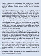 The lens translates and prolongs the mind of the author, a nomadic mind, reaching out in pursuit – within reality itself – a caustic form, significant, stripped of every stylistic flourish and all descriptive rhetoric.
