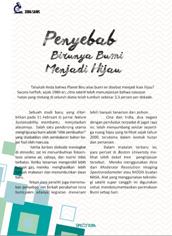 menghijaunya bumi adalah "efek pembuahan" ga ruang hijau yang terlihat sejak tahun