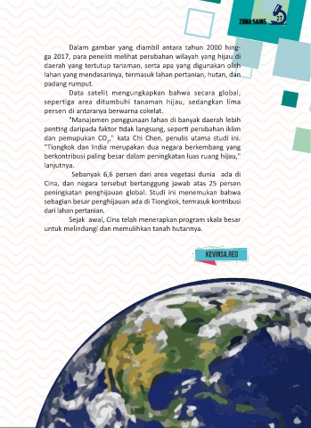 sebagian besar penghijauan ada di Tiongkok, termasuk kontribusi