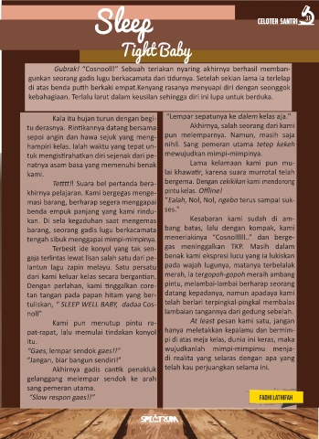 tuliskan, “ SLEEP WELL BABY, dadaa Cos- telah berlari terpingkal-pingkal membalas
