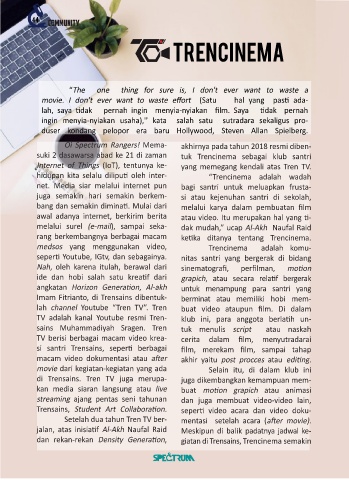 hidupan kita selalu diliputi oleh inter- “Trencinema adalah wadah