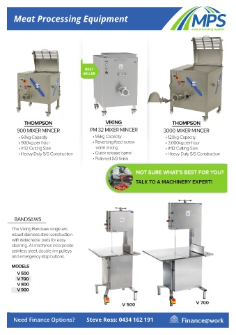 Meat Processing Equipment Need Finance Options? Steve Ross: 0434 162 191