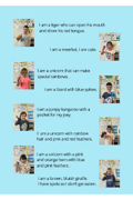 I am a unicorn with a pink and orange horn with blue and pink feathers .