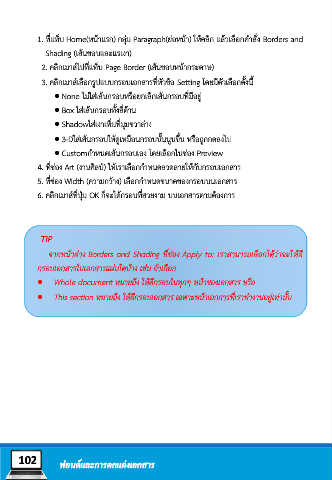 1. ที่แท็บ Home(หน้าแรก) กลุ่ม Paragraph(ย่อหน้า) ให้คลิก แล้วเลือกค าสั่ง Borders and