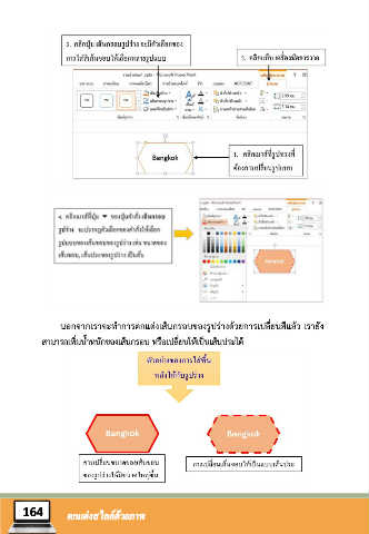 นอกจากเราจะท าการตกแต่งเส้นกรอบของรูปร่างด้วยการเปลี่ยนสีแล้ว เรายัง สามารถเพิ่มน้ าหนักของเส้นกรอบ หรือเปลี่ยนให้เป็นเส้นประได้ 164 ตกแต่งสไลด์ด้วยภาพ