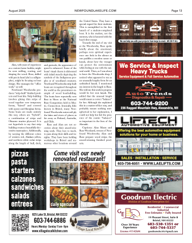 and gunwale, the appearance of speed is enhanced. Some of the boats’ visual charm is elaborated with inlaid stencils depicting the symbols of the Indigenous peo- ples or of woodland creatures. Newfound Woodworks strip-built boats are recognized throughout the world as the preeminent ex- ample of wood boatbuilding. The boats have repeatedly won Best in Show at the National Boat Competition held in Mys- tic, Connecticut. Ironically, little known in Bristol, many New- found Woodworks watercraft ply the lakes and rivers of places as far away as Finland, Australia, and Chile.