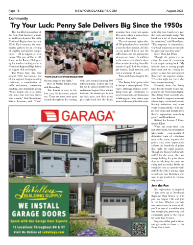 The fun-filled atmosphere of the Penny Sale has been a famil- iar and beloved part of life in the Newfound Region since the early 1950s. Each summer, the com- munity gathers for an evening of laughter and spirited compe- tition — all in support of local causes. This year will be no dif- ferent, as the Rotary Club gears up for another exciting event at Newfound Regional High School on August 14th at 6:30 p.m.