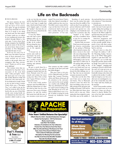As the warm months continue there is so much more yet to see and enjoy. I hope you all get a chance to observe Mother Na- ture at her best. Just remember- look, don’t touch!
