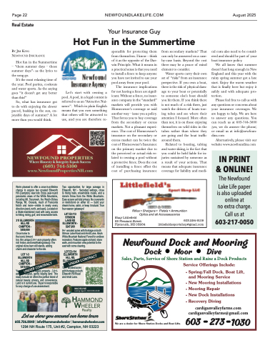 So, what has insurance got to do with enjoying the slower paced, basking in the sun, en- joyable days of summer? A lot more than you would think.