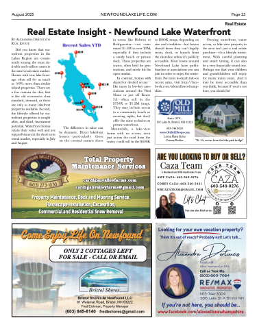 August 2025 NEWFOUNDLAKELIFE.COM Page 23 Real Estate Real Estate Insight - Newfound Lake Waterfront