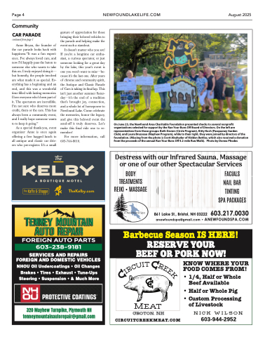 It doesn’t matter who you are! If you're a longtime car enthu- siast, a curious spectator, or just someone looking for a great day by the lake, this year's event is one you won’t want to miss—be- cause it’s the last one. After years of chrome and community spirit, the Antique and Classic Parade of Cars is taking its final lap. This isn’t just another summer Satur- day—it’s the end of a tradition that’s brought joy, connection, and a whole lot of horsepower to Newfound Lake. Come celebrate the memories, honor the legacy, and give this beloved event the send-off it truly deserves. Let’s make this final ride one to re- member!