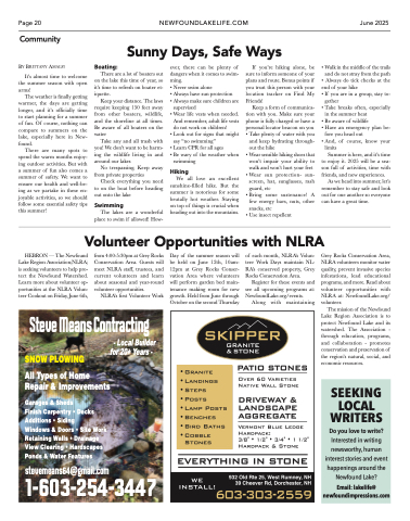 HEBRON — The Newfound Lake Region Association(NLRA) is seeking volunteers to help pro- tect the Newfound Watershed. Learn more about volunteer op- portunities at the NLRA Volun- teer Cookout on Friday, June 6th,