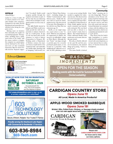 Estelle, as one might imag- ine, wasn’t about to stay “re- tired”. With her son's departure for employment in Maine, she moved to an affordable cottage on Weirs Beach. Although her new “home” was large enough to provide space for a recently purchased grand piano, it was located in a somewhat “risky neighborhood” adjacent to a ca- sino. In 2005, planning to move