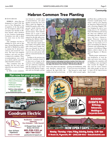 HEBRON – Arbor Day was designated as April 25th this year in New Hampshire, but recognition of the day people are encouraged to plant a tree took place last Tuesday in He- bron instead, when members of the Common Landscaping Committee were able to plant two more trees on the town common.