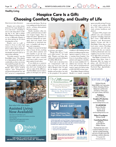 Hospice care is often misun- derstood. Too many families see it as a last resort—something to turn to only when there’s “noth- ing else to do.” But at Pemi- Baker Hospice & Home Health, we see it differently. Hospice is not about giving up. It’s about choosing how to live.