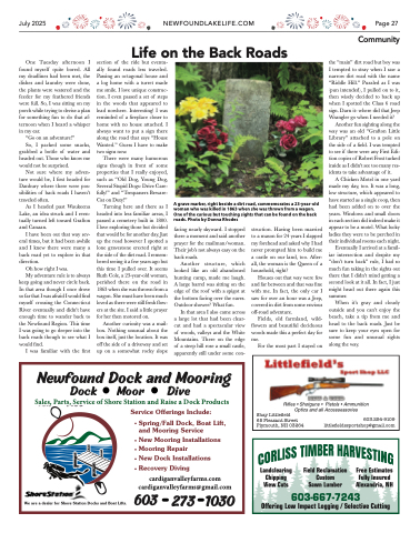 the “main” dirt road but boy was I tempted to stray when I saw a narrow dirt road with the name “Riddle Hill.” Puzzled as I was (pun intended), I pulled on to it, then wisely decided to back up when I spotted the Class 6 road sign. Darn it- where did that Jeep Wrangler go when I needed it? Another fun sighting along the way was an old “Grafton Little Library” attached to a pole on the side of a field. I was tempted to see if there were any First Edi- tion copies of Robert Frost tucked inside as I didn’t see too many res- idents to take advantage of it.
