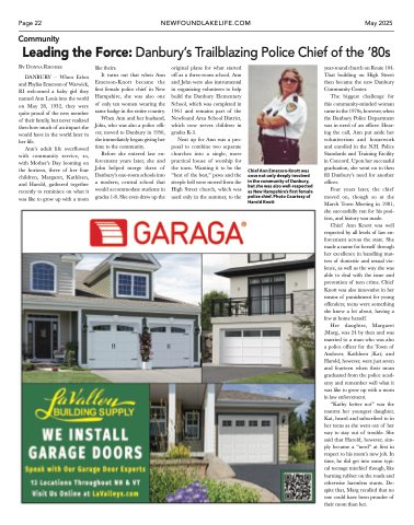 The biggest challenge for this community-minded woman came in the 1970s, however, when the Danbury Police Department was in need of an officer. Hear- ing the call, Ann put aside her volunteerism and housework and enrolled in the N.H. Police Standards and Training Facility in Concord. Upon her successful graduation, she went on to then fill Danbury’s need for another officer.