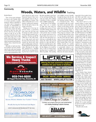 In the State of New Hamp- shire, there are a number of folks who train dogs for tracking and recovery of lost wounded animals during the hunting season. While I stress a first priority that we should get our guns and arrows on a target before the season to fi- nesse the shot placement in a vital area, occasionally the shot misses the mark. The second priority is to give full effort to find the wounded quarry ethi- cally. And after the hunter does his due diligence, he would be wise to call on a blood track- ing dog team to complete the effort if possible. The tracking