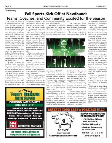 Newfound Regional High School’s athletes, coaches, and fans are ready to cheer on their teams as the season continues. Beyond wins and losses, these fall sports bring the community together, build lasting friend- ships, and create memories that will carry far beyond the final whistle.