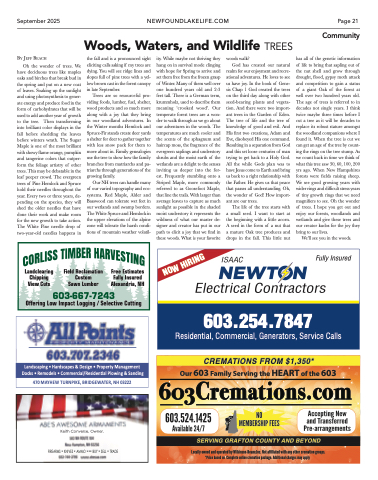 has all of the genetic information of life to bring that sapling out of the nut shell and grow through drought, flood, gypsy moth attack and competition to gain a status of a giant Oak of the forest at well over two hundred years old. The age of trees is referred to in decades not single years. I think twice maybe three times before I cut a tree as it will be decades to replace its robust stature amongst the woodland companions where I found it. When the tree is cut we can get an age of the tree by count- ing the rings on the tree stump. As we count back in time we think of what this tree saw 30, 60, 100, 200 yrs ago. When New Hampshires forests were fields raising sheep. We see good growing years with wider rings and difficult stress years of tiny growth rings that we need magnifiers to see. Oh the wonder of trees. I hope you get out and enjoy our forests, woodlands and wetlands and give these trees and our creator kudos for the joy they bring to our lives.