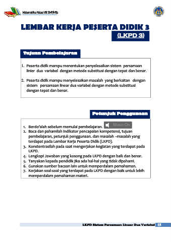 LKPD Sistem Persamaan Linear Dua Variabel