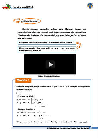 menghilangkan salah satu variabel untuk dapat menentukan nilai variabel lain.