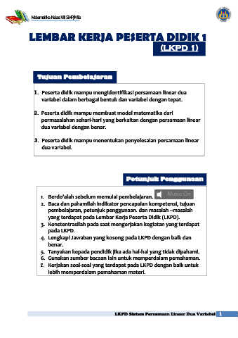 LKPD Sistem Persamaan Linear Dua Variabel 1