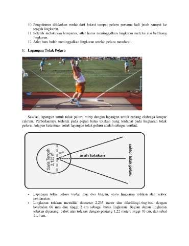 12. Atlet baru boleh meninggalkan lingkaran setelah peluru mendarat.