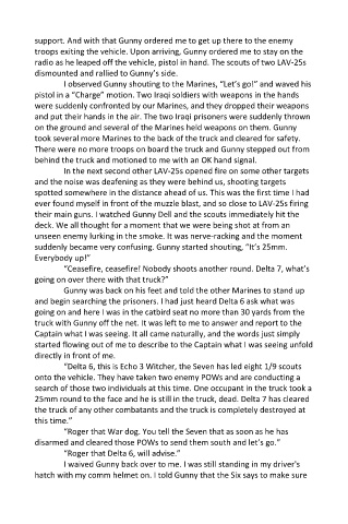 troops exiting the vehicle. Upon arriving, Gunny ordered me to stay on the