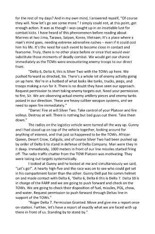 off. The radio traffic chatter from the TOW Platoon was motivating. They