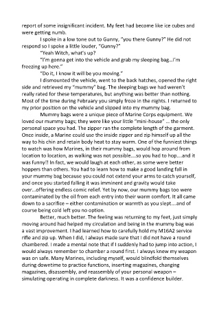 to watch was how Marines, in their mummy bags, would hop around from