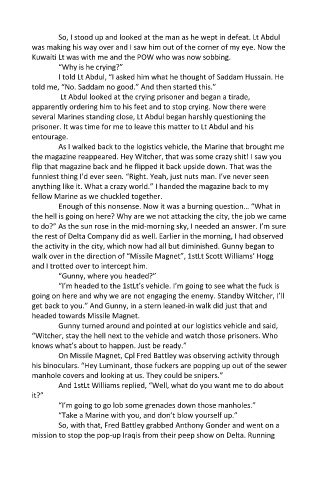 the rest of Delta Company did as well. Earlier in the morning, I had observed