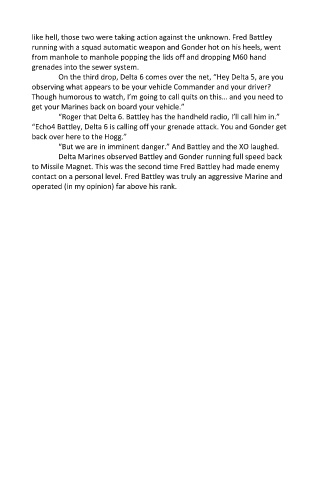 “Roger that Delta 6. Battley has the handheld radio, I’ll call him in.”