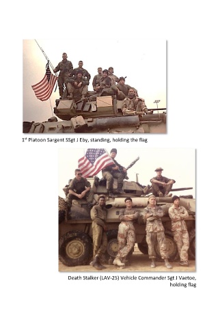 st 1 Platoon Sargent SSgt J Eby, standing, holding the flag Death Stalker (LAV-25) Vehicle Commander Sgt J Vaetoe, holding flag