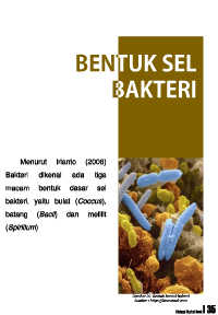 Menurut Irianto (2006) Bakteri dikenal ada tiga macam bentuk dasar sel bakteri, yaitu bulat (Coccus), batang (Bacil) dan melilit (Spirillum) Gambar 29. Bentuk-bentuk bakteri Sumber : https://devostock.com Biology Digital Book | 35