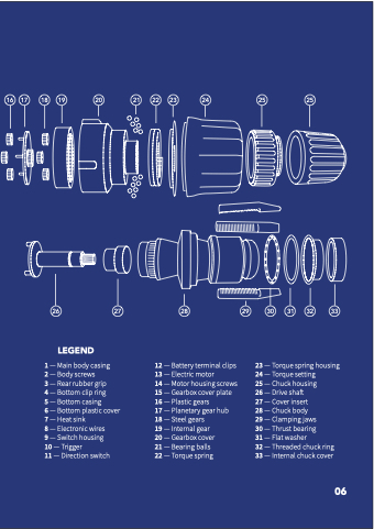 — — Internal chuck chuck cover 6 — — — Bottom Bottom plastic cover 7