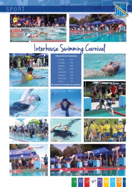 SPOR T Interhouse Swimming Carnival House Score Summary Frayne: 507 La Valla: 443 Marian: 422 Hilary: 408 Marcellin: 382 Damian: 339 McAuley: 316 Austin: 262 No year level champions awarded. 110