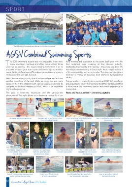 T he 2016 swimming season was very enjoyable. There were hard training and dedication to the team. Each year level fills