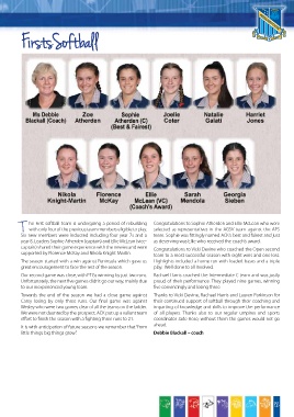 T he First softball team is undergoing a period of rebuilding Congratulations to Sophie Atherden and Ellie McLean who were