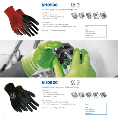 Foam Nitrile grip palm, Nylon Welterweight liner.