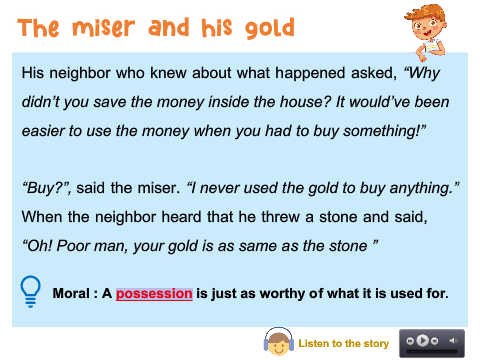 “Buy?”, said the miser. “I never used the gold to buy anything.”