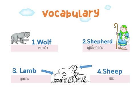 Vocabulary หมาป่า ผู้เลี้ยงแกะ ลูกแกะ แกะ
