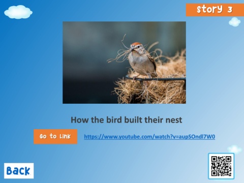 Story 3 How the bird built their nest Go to Link https://www.youtube.com/watch?v=aupSOndl7W0 Back